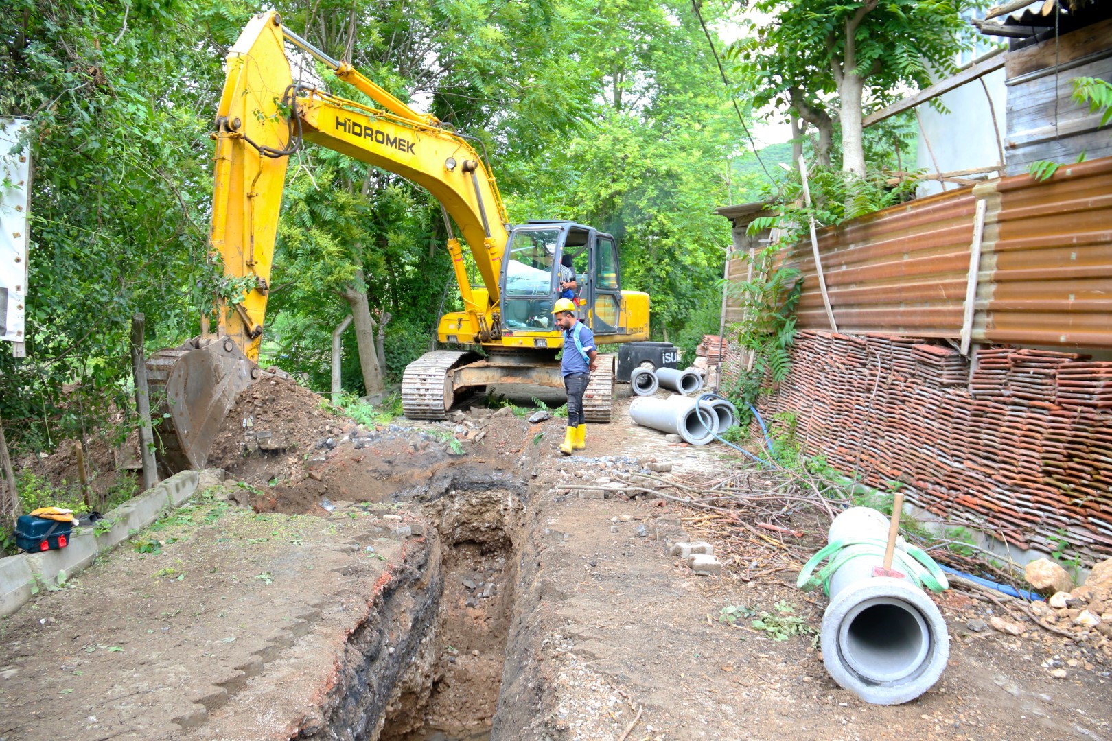 Dilovası Mimar Sinan Mahallesi, Elmacık Dere Yolu Sokak’ta, İSU Genel Müdürlüğü tarafından altyapı çalışması yapılıyor